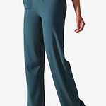 Calça reta com bolsos, cordão ajustável e cintura alta.